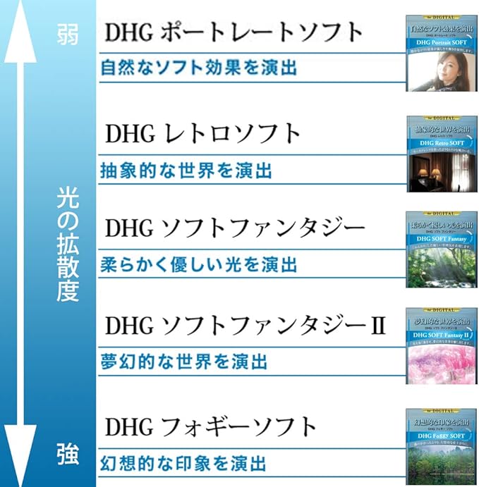 DHGソフトシリーズは柔らかく光を拡散し、優しい表情が表現できるフィルターです。