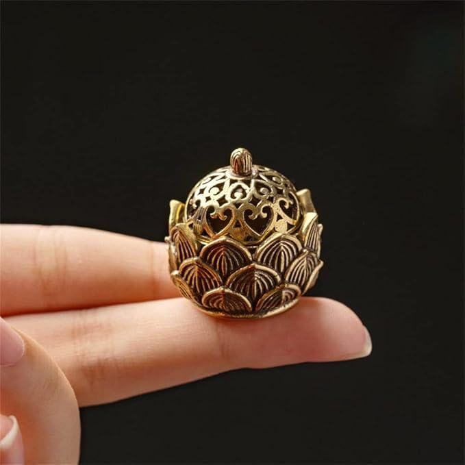 蓮華 連弁香炉 ミニ 香炉 ハスの花 置物 金属製 真鍮 三角香 コーンタイプ 小物入れにも