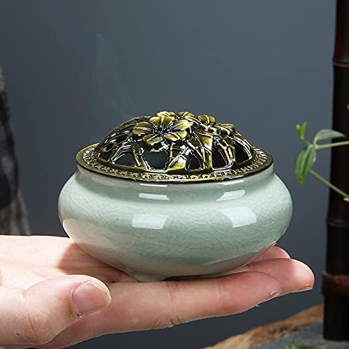 (pont du monde) 香炉 お香 線香 お香立て 陶器 アロマ 陶磁器 おしゃれ 蓋付き (薄緑)