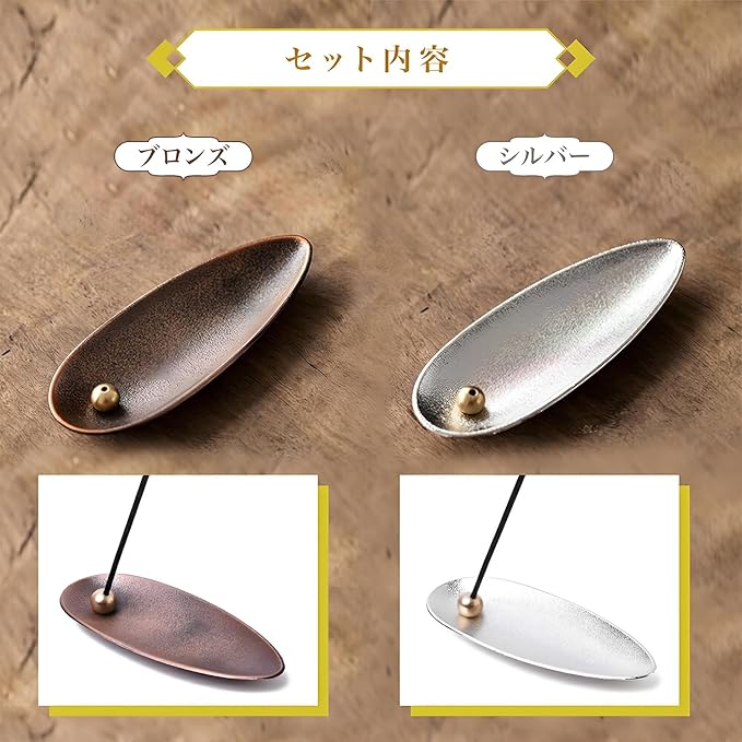 【銅+銀2色セット・高い汎用性】落ち着いた雰囲気のブロンズ色(銅)と、清らかな光沢のシルバー色の2色をセットで提供。その日の気分、使用する香りの種類(例:白檀の渋み/ラベンダーの柔らかさ)、あるいは空間のデザインに合わせて自由に使い分けることができ、1セットで複数の場面に対応できるお得な仕様です。