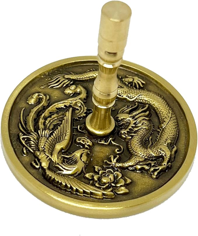 灰ならし 灰押さえ 仏具 香道 茶道具 お香 香炉アッシュツール ハンドルタイプ 道具 パウダープレス インテリア 風水 縁起物 工芸 伝統 (龍と不死鳥)