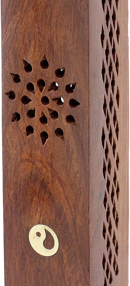 ウッド 真鍮 お香立て インヤン タワー スティック香 コーン香 両用 スリムサイズ
