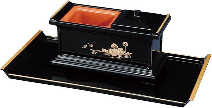 焼香盆セット 7.0寸 黒(フチ金) 蓮 大 4720002
