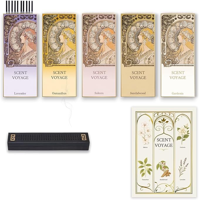 白檀・金木犀・桜など5種【心ほどける香り】少煙 線香 灰が飛び散らない黒檀短香炉付き SCENT VOYAGE ギフト