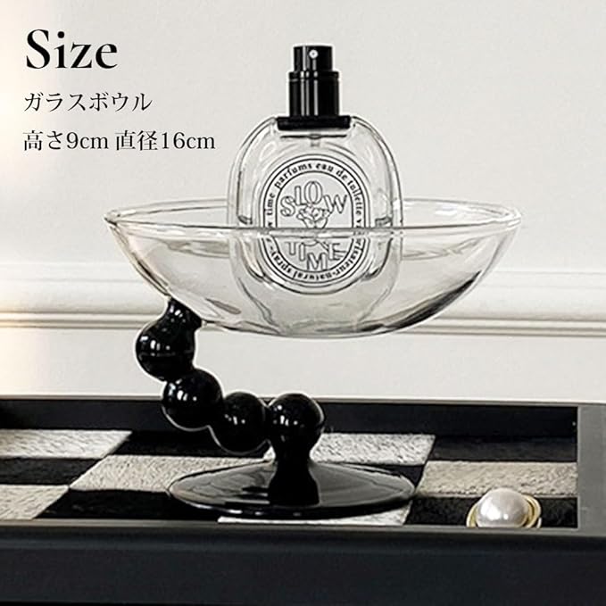 アクセサリーやインセンスホルダーを飾ることができるおしゃれなトレーが登場しました。 ガラスボウルは直径16cmのサイズなので、十分な収納をいただけます。 アクセサリーや香水等をただ入れるだけでも「様」になるおしゃれなディスプレイトレー。 インセンスホルダーを入れることで十分な大きさの香皿として灰を受け止めてくれますので、お部屋が汚れません。 脚高デザインなので、存在感があり収納いただくものを目立たせることができます。 カラーはクリアとブラックの2色ご用意しております。