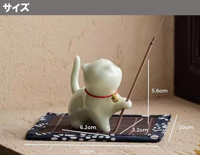 speed mao おしゃれ 和風 猫ちゃん 香炉立て お線香 ブラシ付き 癒し リラクゼーション などに ホワイト