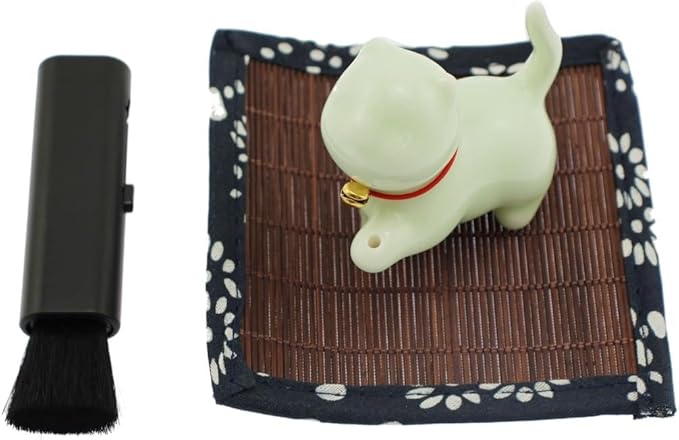 セット内容:猫のお香立て/ 竹マット /ミニブラシ(ブラシ格納式)
