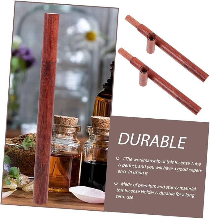 OUNONA 2個セット ローズウッド製携帯用香スティックホルダー 香容器 線香収納ケース ポータブル香管 24Cmの木製香チューブ 家庭用インテリア香炉