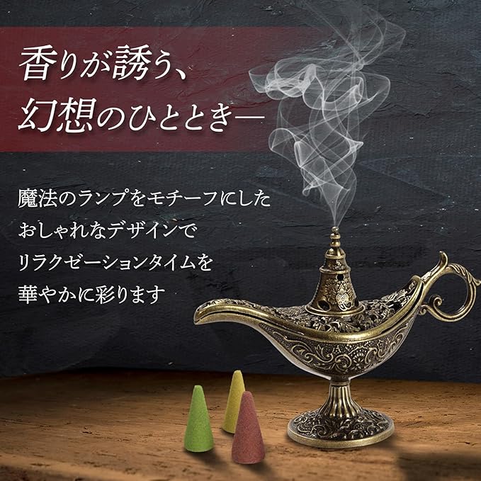 『コーンお香専用お香たて』 アラジン風デザイン:魔法のランプをモチーフにしたおしゃれな香炉。空間を華やかに彩るインテリアとしても活躍