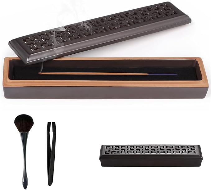 香炉ボックスセラミック製の香立ては、お香を汚さずにすべてのお香灰をキャッチし、お手入れも簡単です。 香炉には蓋が付いているので、窓や扇風機が開いていても灰が飛ぶことがありません。セラミック素材で香炉が燃え尽きることがなく、偶発的な接触によるやけどや線香の消火を防ぎます。