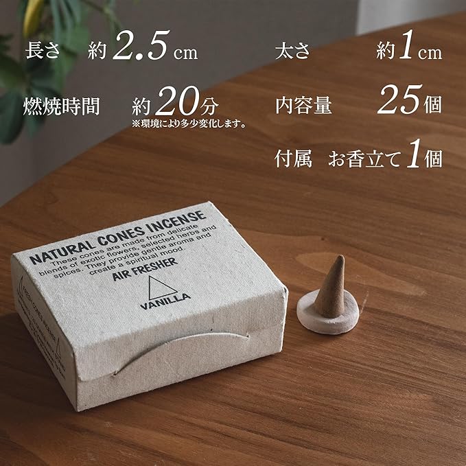 バニラ お香 コーン お香立てセット すっきりした甘い香り 25個入り アロマ リラックス ヨガ 瞑想