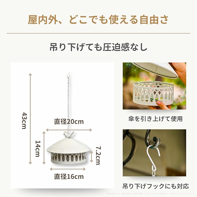 【どこでも使える自由さ】 金属製ながら軽量で持ち運びも簡単。 リビング・縁側・バーベキューなど、さまざまな場所に気軽に設置できます。 電源も電池も不要なので、どこでも自由に使えるのが魅力です。 庭仕事やアウトドアのひとときにもぴったり。