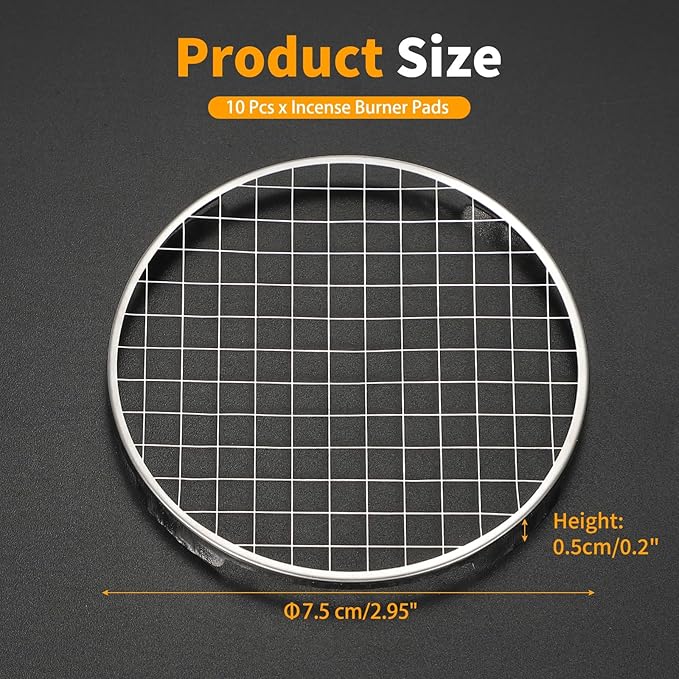 サイズ&パッケージ:外径7.5cm/2.95インチ;内径7.1cm/2.8インチ;高さ0.5cm/0.2インチ;パッケージ内容:香炉パッド10個
