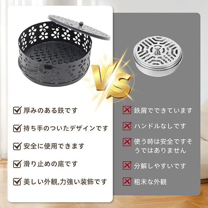 【蚊取り線香ホルダー】耐久性のある鉄製で安全に使用でき、レトロな外観がどんなインテリアにもマッチします!