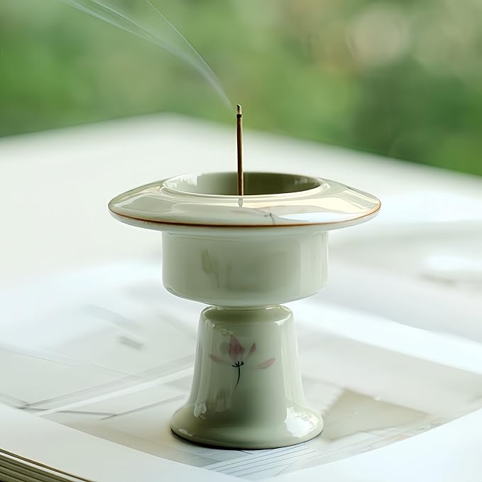デザイン: 白磁に繊細な蓮の花柄が手描きされた上品な香炉で、伝統的な和の空間に調和します