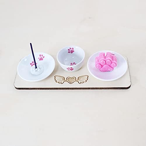 供養 仏具 ペット メモリアル 手元供養 ペット 仏具 セット ウッドトレー 木製スタンド エンジェルハート 肉球 プリント ペット供養 かわいい (ピンク)