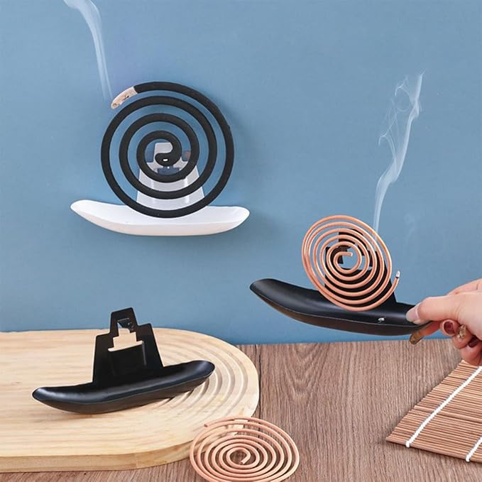 蚊取り線香皿 おしゃれ 壁掛式 渦巻香用 線香皿 蚊取り線香ホルダー 蚊取り線香入れ おしゃれ 蚊遣り 蚊よけ モダン インテリア 刺さずに使え 卓上 置物 庭の装飾 屋内 屋外 夏 花见 キャンプ用品 (黒)