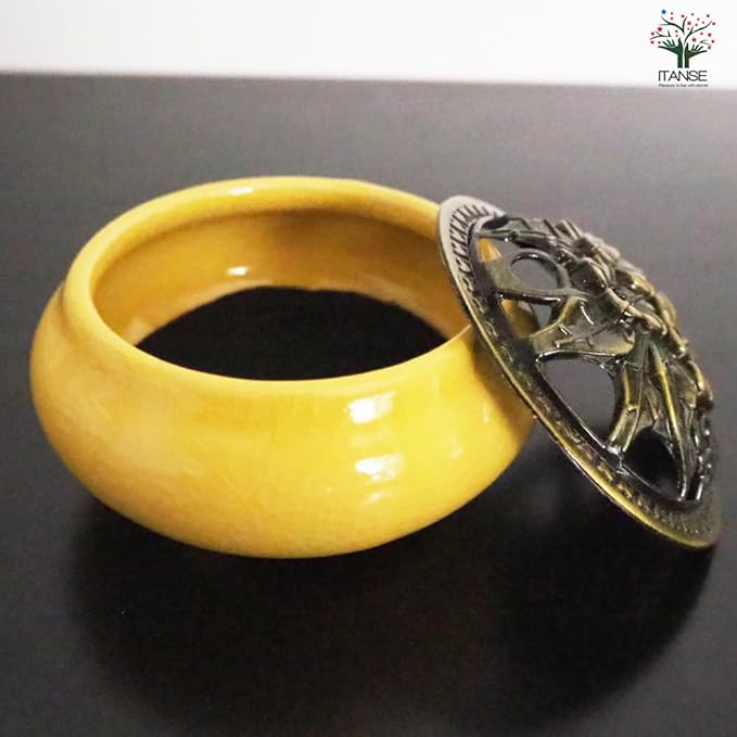 ITANSE セラミック香炉・淡黄 1個売り【お香立て】花の装飾が入った蓋付き。陶器製のお香立てです。