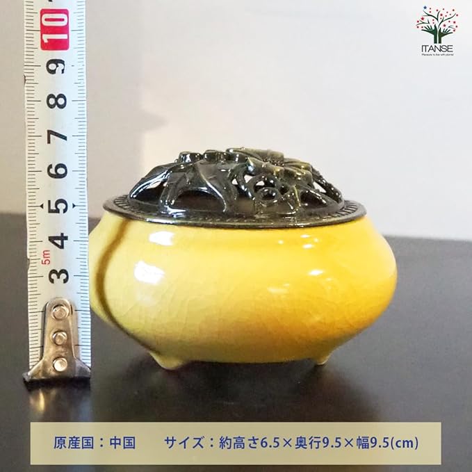 【セラミック香炉・淡黄の詳細】 サイズ:高さ6.5cm 奥行9.5cm 幅9.5cm 原産国:中国
