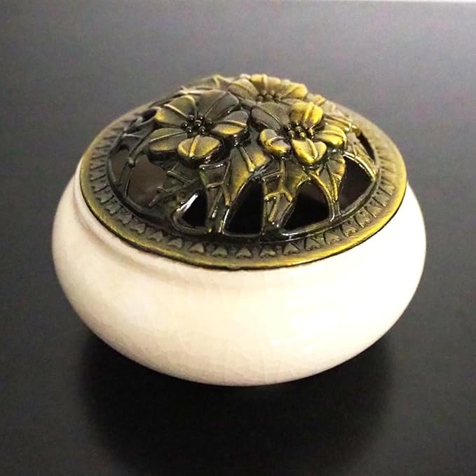 【お読みください】 火気には十分に注意してご使用ください。 お子様やペットの手が届かない場所に保管してください。 陶器製ですので、衝撃を加えると割れることがあります。取扱いには注意してください。 お香の量や種類によっては、使用後、金属製の蓋が熱を持っている可能性があります。ご注意ください。 使用後は、換気を十分に行ってください。 スマホ画面やPC画面の設定などにより、お届け時に掲載画像と少し異なったイメージ・色目になる場合があります。ご了承ください。