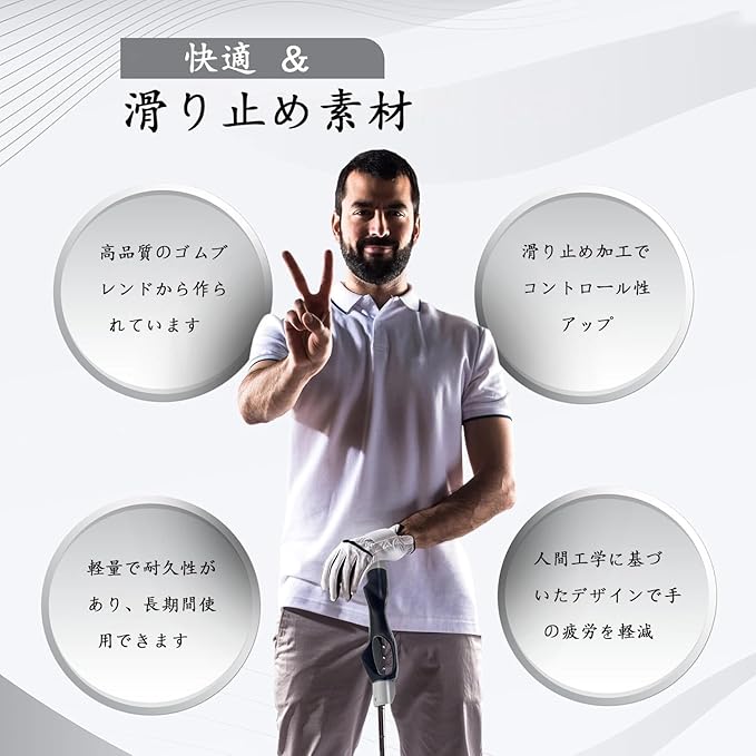 手のサイズを問わず快適:人間工学設計でさまざまな手の大きさに対応。多くのゴルフクラブに装着可能です。