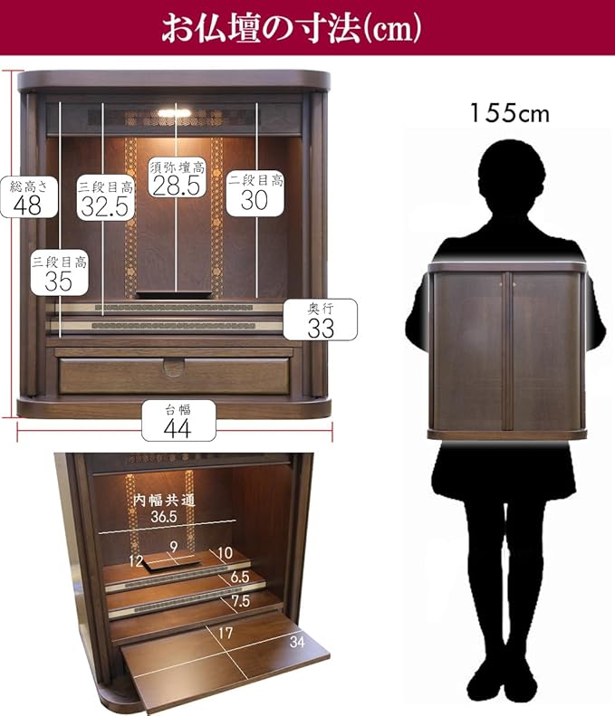 【お仏壇のサイズ】高48cm X 幅44cm X 奥33cm 詳細は商品画像をご参照ください。