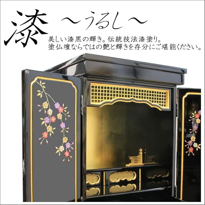 【伝統技法 漆 -うるし-】美しい漆黒の輝き。伝統技法漆塗り。塗仏壇ならではの艶と輝きを存分にご堪能ください。