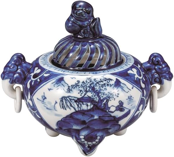 九谷焼いわたや 4.5号香炉・染付山水 K9-1492
