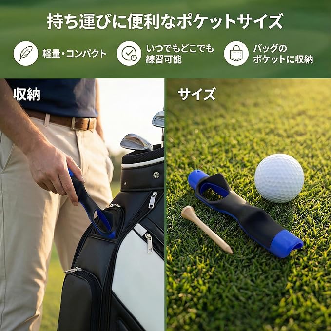 ④ 自宅の室内練習にも:短時間でも取り入れやすく、インドアでのグリップ矯正・手の形の確認に便利。