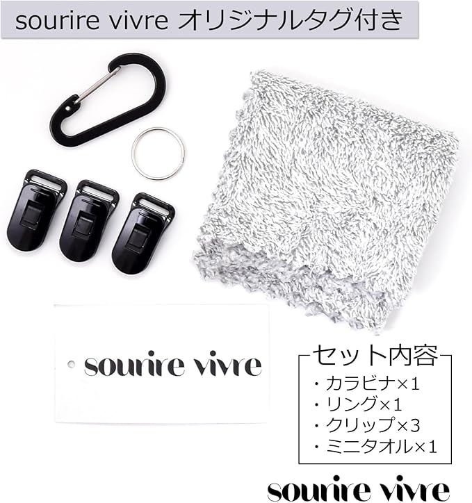 [sourire vivre] パターカバーホルダー グローブホルダー あると便利なミニタオル付き 開口部10mm大口径強クリップ 取外し簡単 ゴルフ パターカバーキャッチャー