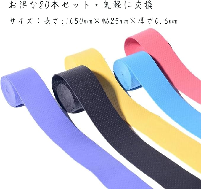 【お得な20本セット・気軽に交換】グリップテープなら気軽に交換できて、消耗品だから沢山交換しても経済的。面倒なグリップ交換の作業がありません。グリップを太くしたいときは、重ねて巻くだけなのでカンタンです!