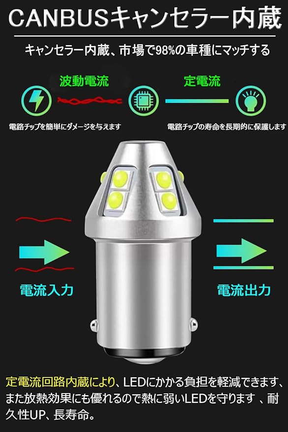 定電流回路 安定性抜群:このt20 led ダブル はインテリジェント定電流回路を搭載。車両電圧変化にも影響されずに安定した点灯を持続します。これによりLEDにかかる負荷をおさえ、より長寿命を実現しております。
