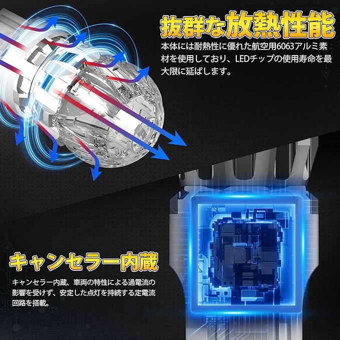 【キャンセラー内蔵&高効率放熱】Perrace t20 led ダブル バックランプは、日本車向けに設計された専用キャンセラー内蔵で、ハイフラや警告灯の点灯を抑え、安心の互換性を提供します。航空グレードアルミ合金ボディと多層放熱構造で熱を効率的に分散し、長時間使用でも安定した明るさを維持。さらに、IP68防水性能を備え、大雨や雪の日でも安心して使用可能。オフロードや極寒地域でも優れた耐久性を発揮します。※輸入車および一部の高級車では、車両の電装仕様により、ちらつきや警告灯の点灯が発生する可能性があるため、本製品は対応しておりません。