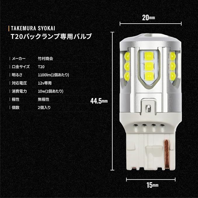 ✅【車検対応】 竹村商会製のT20シングルバックランプ専用バルブは、車検基準に対応しており、安心してご使用いただけます。 夜のバックに不安がある方は、竹村商会製のT20シングルバックランプ専用バルブをぜひお試しください。