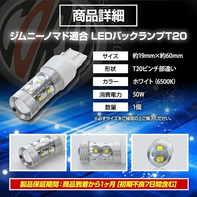 ジムニー ノマド 適合 T20/50W バックランプ LED 純白色 車検対応 視認性抜群 爆光 jimny NOMADE リア テール カスタム パーツ アクセサリー ドレスアップ スズキ SUZUKI