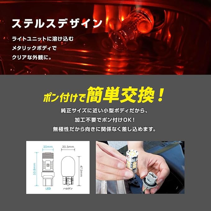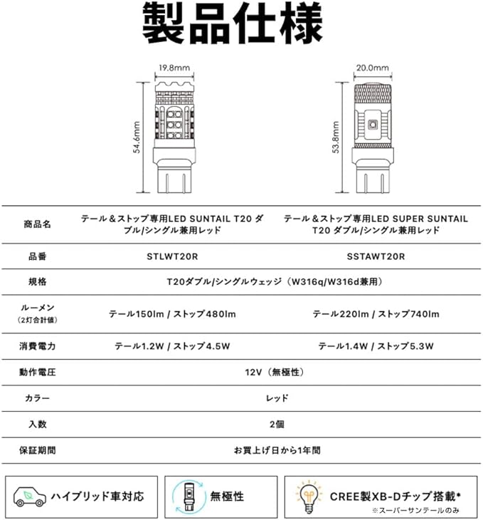 テール&ストップ専用LED「スーパーサンテール」は瞬間点灯で追突を防止します。