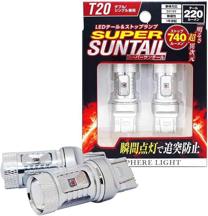 スフィアライト T20 LED バルブ テール ストップ ランプ スーパーサンテール レッド 740lm 12V 2本入 車検対応 無極性 ダブル シングル 対応 ウェッジ ブレーキ SPHERELIGHT SSTAWT20R