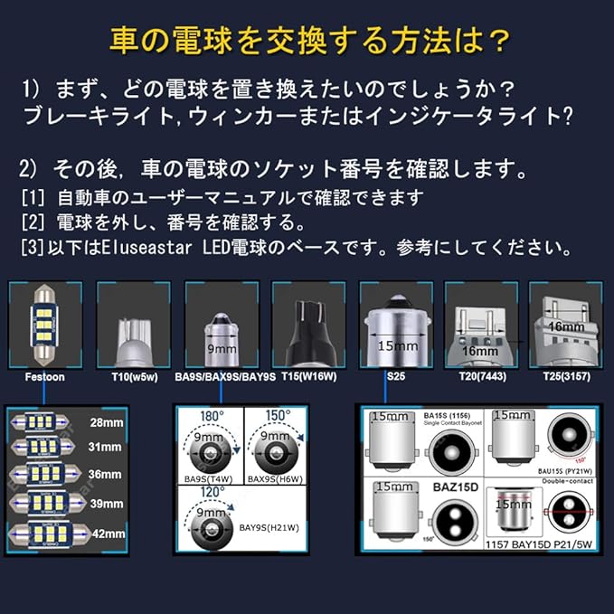 ▼ T20(W21/5W)純正白熱球と同等サイズなので、バルブ型式[W21/5W]であれば安心してお使いいただけます。