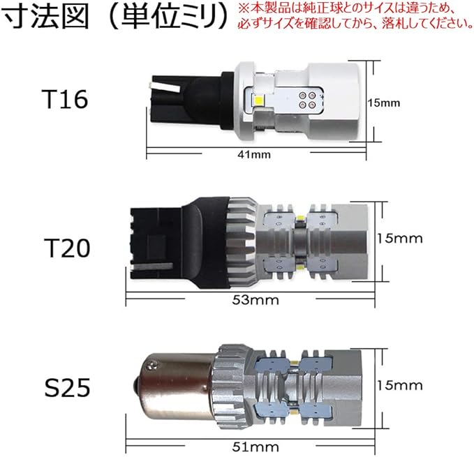 最新高輝度CSP2020チップを3基搭載! 最新型CSP LEDを搭載したバルブ全光束2400LMの大光量を誇るバックランプ・ポジション専用球です。直視できないくらい明るさで視認性抜群です。合成強化ゴムで金口を強めに締めるので防水対策も万全でございます。