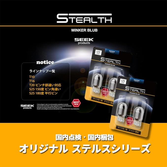 T20 / T20 ステルスウインカーバルブ クロームバルブ ステルスバルブ ウインカー ハロゲン球 (T20 ピンチ部違い(4個)前後セット)
