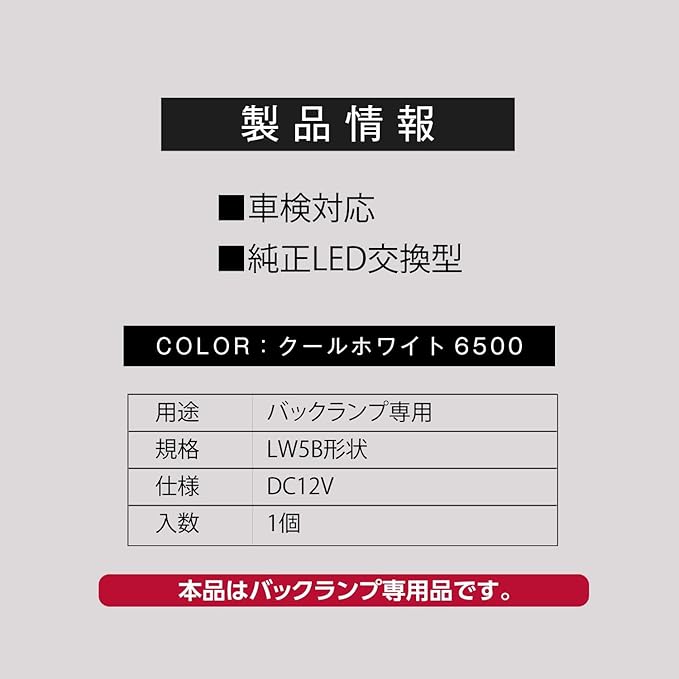 バックランプ専用、純正LED交換型!