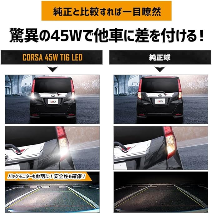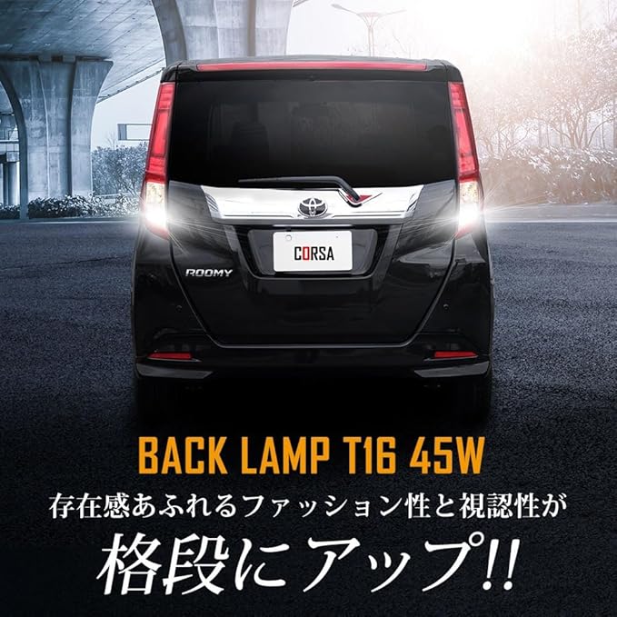 CORSA ルーミー タンク トール LED バックランプ T16 45W 560lm ウェッジシングル球 ホワイト 後退灯 高輝度 省電力 1120LM カスタム パーツ アクセサリー ドレスアップ ROOMY TANK THOR [2] M