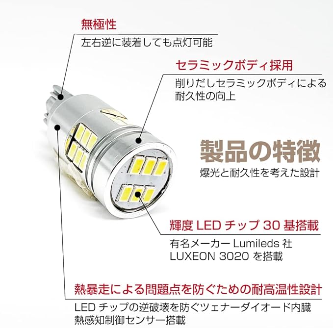 cobox LEDバックランプ T16 爆光 4000lm LUXEON3020 LEDチップ 30基搭載 無極性 6000K 新基準車検対応 テールランプ 2個セット