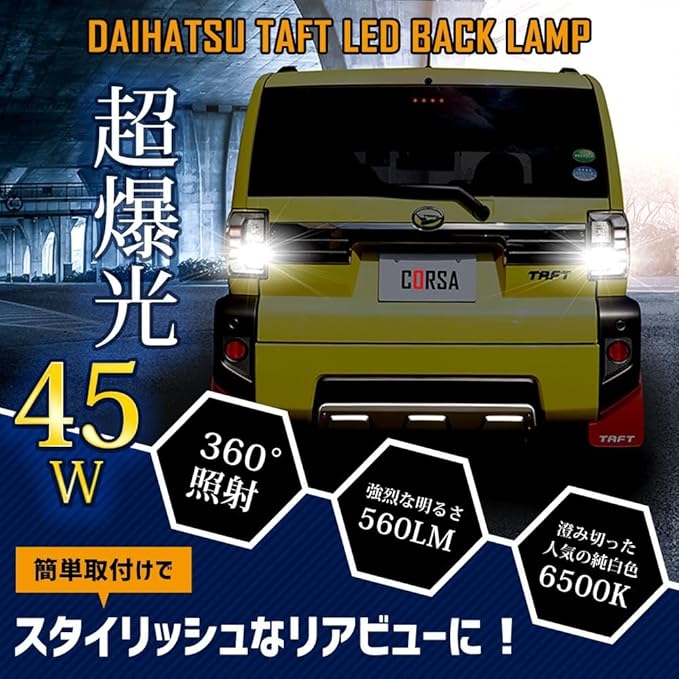 CORSA タフト LEDバックランプ T16 45W 560lm ウェッジシングル球 ホワイト 後退灯 高輝度 省電力 1120LM カスタム パーツ アクセサリー ドレスアップ 車検対応 TAFT [2] M