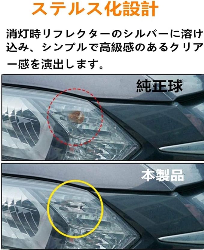 【ハイフラ防止機能内蔵】ここがPOINT ハイフラ防止機能内蔵 ハロゲンランプをLEDウインカーに交換する際に、通常車体側に抵抗を接続しないとウインカーが高速点滅するハイフラ現象が起きますが、本製品は小型のハイフラ抵抗をバルブ内に内蔵していますので無加工、ポンつけで取付ができます。(他の個所でもLED化している場合や、一部の車種では前後両方ともLEDにした場合など、ハイフラ・ゴースト点灯防止機能が働かない場合がございます。その際は、別途ハイフラ抵抗器をご用意願います。ハイフラ状態になる場合、ご連絡いただけると早速対応できます。)