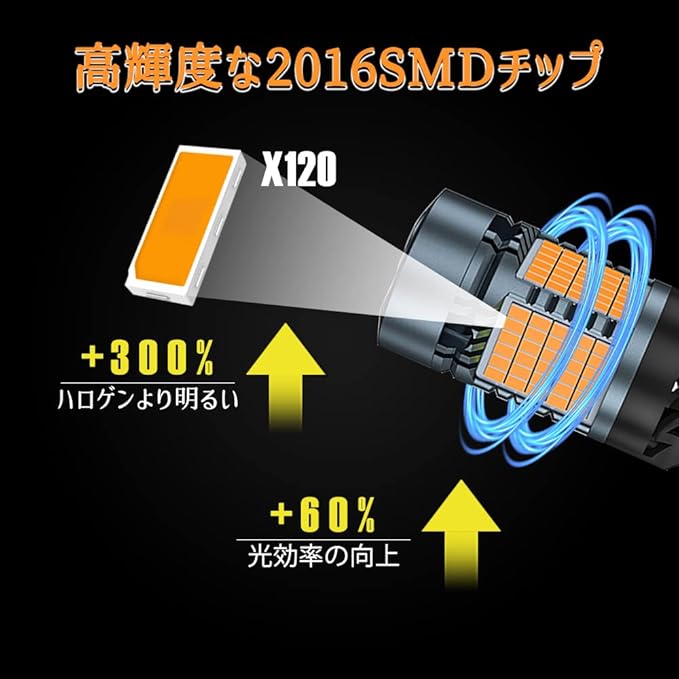 【超高輝度】120連 1206SMD LEDチップ。全方位照射、昼間の環境は高い視認性をあります。電力消費量が低く、使用寿命は50000H以上に至る,省エネ環境に優しく、固く耐用である。