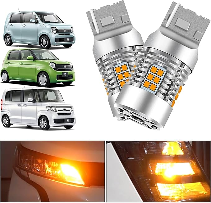 製品仕様<br> ●光色:3000kアンバー<br> ●対応電圧:DC10~30V<br> ●消費電力:24W/台●極性:無極性 ●LEDチップ:2020 SMD ●保護等級:IP65 ●ルーメン:2000Lm/本 ●保証期間:1年間保証适用车型: N-BOX JF1/JF3・N-WGN JH1/JH3・N-ONE JG1 LED