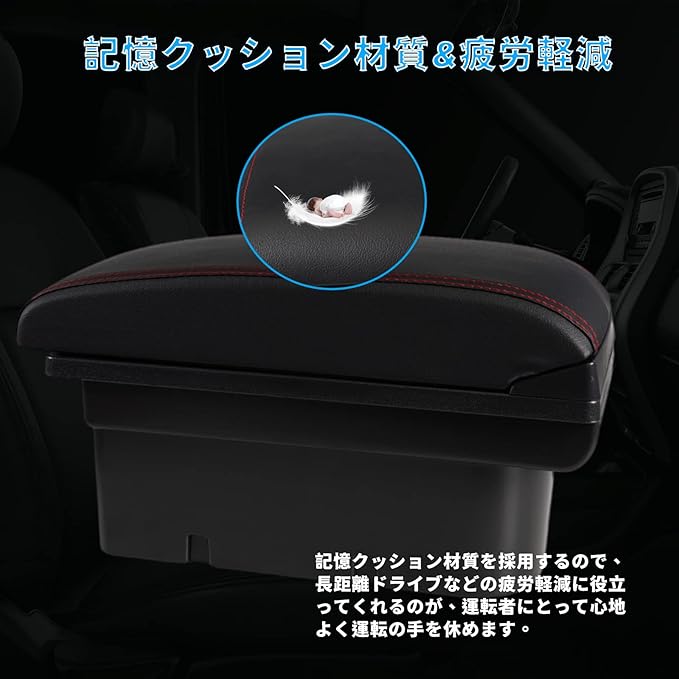 【デザイン性アップ】運転席からすぐにアクセスできる収納スペースとして使えるだけでなく、車に最適な機能を付加することができます。肘おきクッションが前に5CMまで動き、肘を置きやすい位置に調整できます。長距離ドライブなどの疲労軽減に役立ってくれるのが、運転の手を休めるアームレストです。