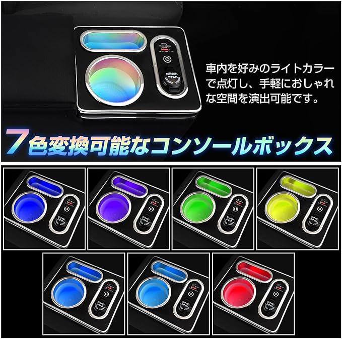 【7色変換LED付き】夜間の車内照明用LEDライトが付きで、暗い時間帯に足元などを明るくになります。7色変換LEDテープライトで車内を装飾し、車内を好みのライトカラーで点灯し、手軽におしゃれな空間を演出可能です。