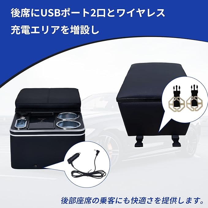 【2026年新登場】 Maydolly リアコンソールボックス リアシート収納ボックス 車内収納ボックス 専用設計 多機能 USB/ワイヤレス充電 カップホルダー2個 スマホホルダー LED照明 車内整理 車載グッズ ミ二バン 5人乗りセダン用